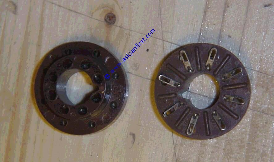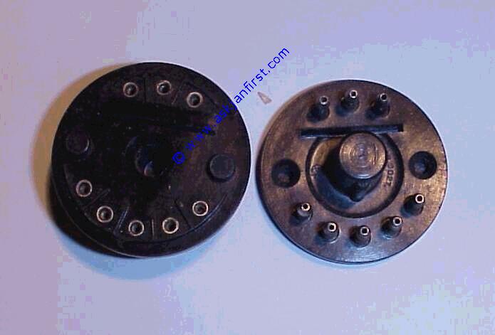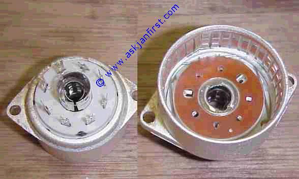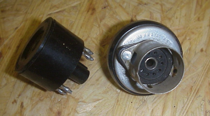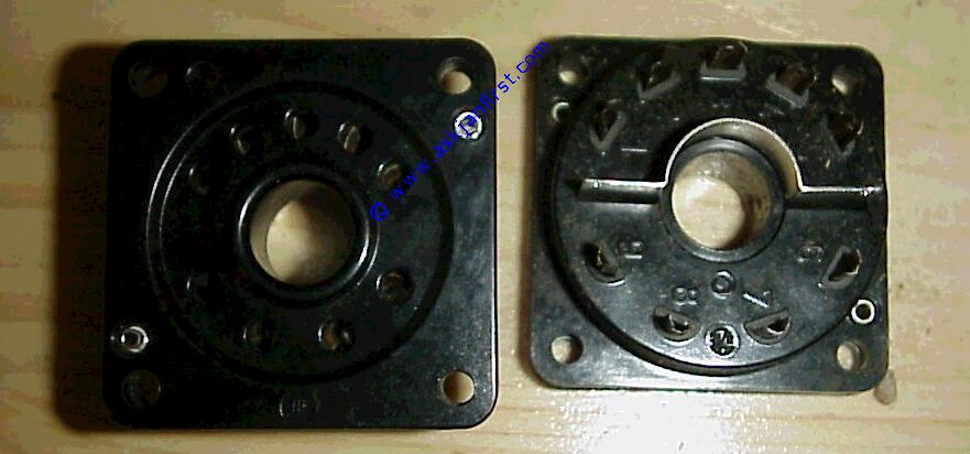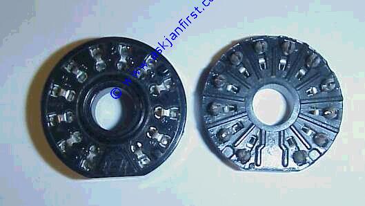 Fassung für DDR Gnomröhren. n... Sockets for former GDR "Gnom"-tubes, 11pin, weird design.