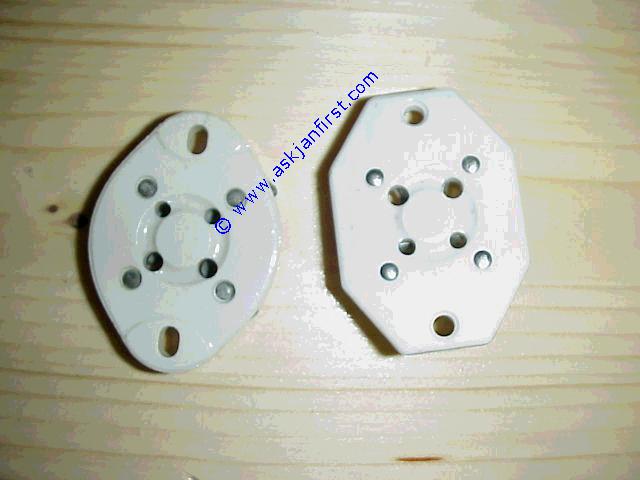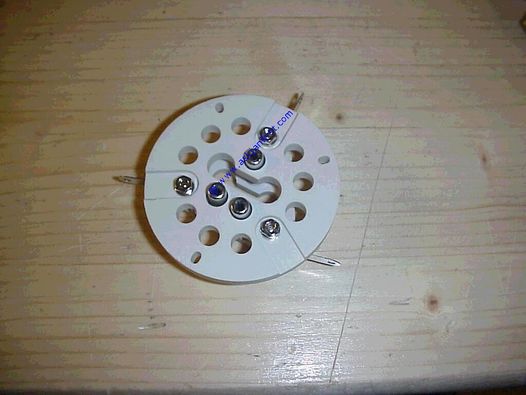Produktbild   FAS208 Fassung Keramik für GM 70, Septar (siehe Bild) als Trägerplatte umgebaut Socket for GM 70, modified septar socket. Support pour tube GM 70, céramique 11,00 13,09 Frag Jan Zuerst GmbH&CoKG