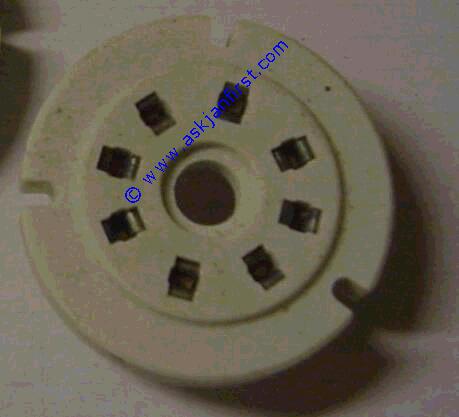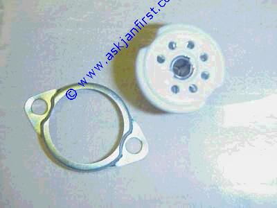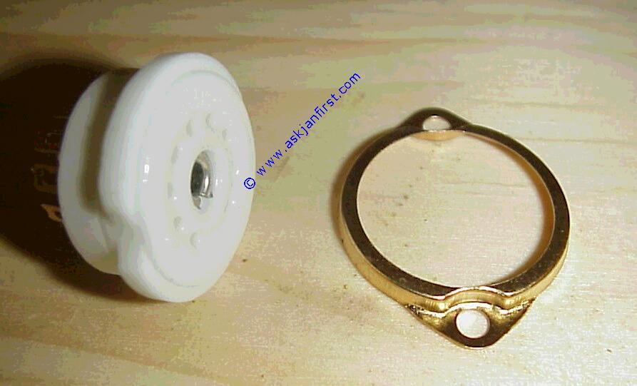 Produktbild   FAS008 Fassung Chassis Oktal Keramik mit Schnappring versilberte Kontakte. 8 pin octal with clamp ring silber octal, céramique chassis, contact argentés, montage avec crampon 2,20 2,62 Frag Jan Zuerst GmbH&CoKG