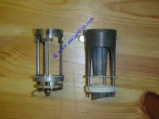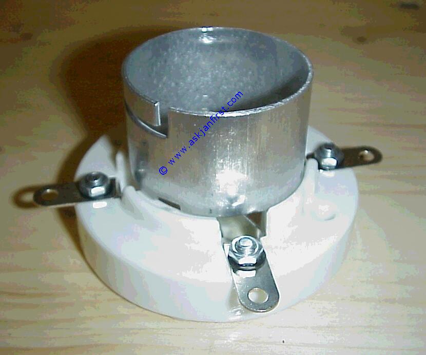Produktbild   FAS276 Fassung keramisch für GU 50, LS 50, mit Käfig. Geliefert wird je nach Verfügbarkeit die alte dt. Version oder die Russ. Version socket, ceramic for GU 50 with cage Support pour tube Gu 50 / L S 50 avec casque métal call a.A. Antiquität / Sammlerstück, Infos hier