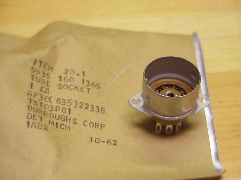 9 pin miniature NOS US made socket, mil-quality, micanol, very tight grip of tube pins