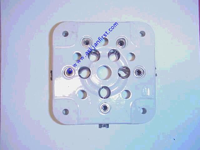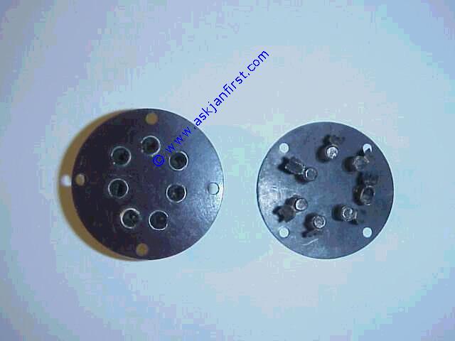 Produktbild   FAS011 Fassung Chassis Oktal Kunststoff Spezialversion für mag. Augen, kreisrunde Scheibe ohne Befestigung, Gebrauchtware 8 pin octal special version without mountings for tuning indicators like EM34. Used octal plastique, version speciale pour les tubes-indicateurs comme EM 34 etc. Occasion 1,20 1,43 Antiquität / Sammlerstück, Infos hier