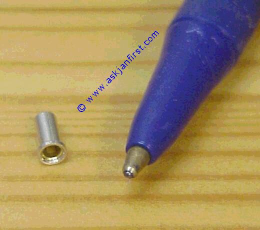 Produktbild   FAS918 Einzelkontakt, der größenmäßig oberhalb der FAS901 ansetzt, Teil des FAS152-3 Sets, eignet sich für Stifte von 1,2 mm bis 1,63 mm, interessant für zahlreiche Wehrmachtsröhren und deren russische Äquivalente. Präzisions- Drehteil  Single contact receptacle for wire tube pins from 1,2 to 1,6 mm diameter, fine quality, milled, fits many hard-to-socket tubes like some German or Russian mitlitary tubes, loktals etc etc. contact pour les fils d´environ 1,2-1,6 mm, haute qualité 0,59 0,70 Frag Jan Zuerst GmbH&CoKG