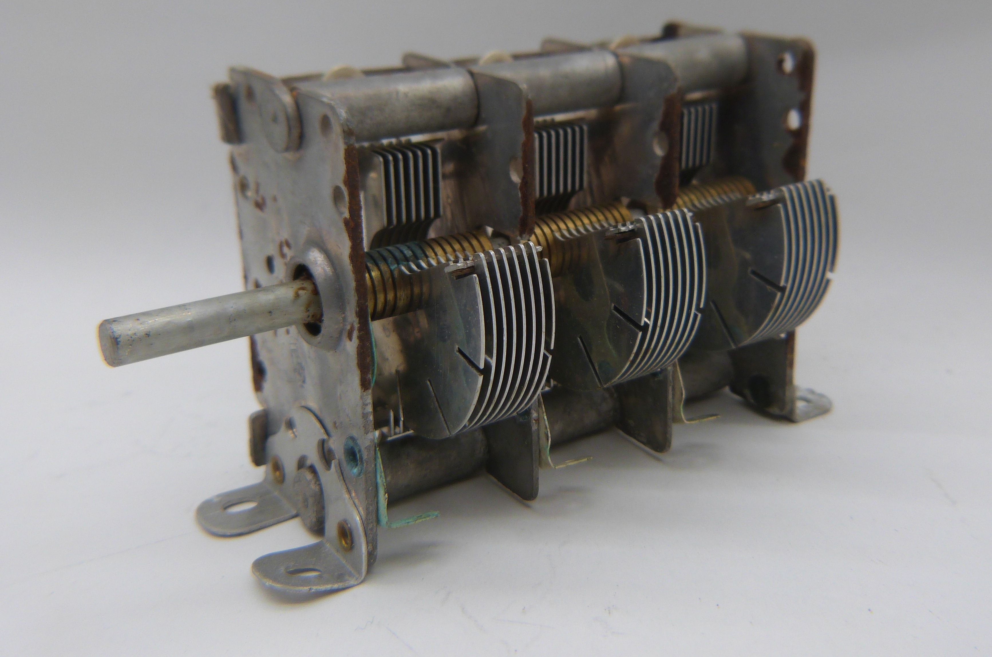 Dreifach-Dreko, Artikelnummer KON0089B Neue, alte Dreifachdrekos, englische Fertigung, kugelgelagert, leichtgängig, ohne Untersetzung. Leider durch nicht optimale Lagerung etwas korrodiert, jedoch voll funktionsfähig. Kapazität 3* 330 pF Je Stück für nur 9,90 EUR (Incl. MWSt.) Angaben zur Produkthaftung: Dieser Artikel ist eine Antiquität. |