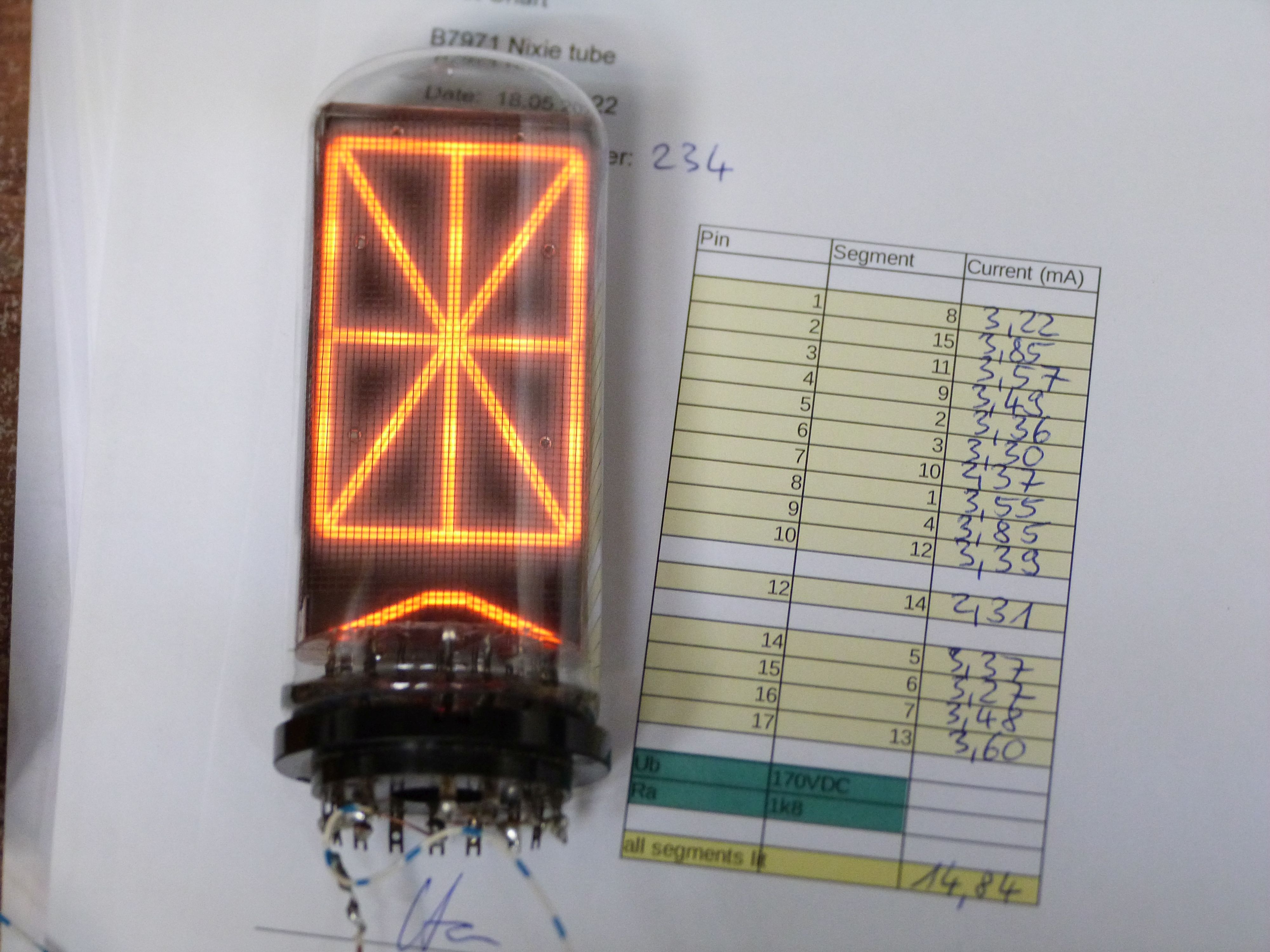 Neues Angebot: Die Riesen-Nixie B7971 ist uns zugelaufen. Verpackt waren sie in Originalverpackungen, möglich wäre, dass sie gelaufen sind, wir wissen es nicht. Deshalb haben wir sie sehr sorgfältig, Segment für Segment vermessen und dokumentiert, die Fotostrecke dazu finden Sie hier. Wir können ab Lager anbieten: B7971 USA gemessen, einwandfrei, EUR 236,81 (incl. MWSt.) Es sind auch genug davon am Lager für Four-Letter-Word-Projects und ähnliches. Angaben zur Produktsicherheit: Dieses Angebot ist eine Antiquität. |