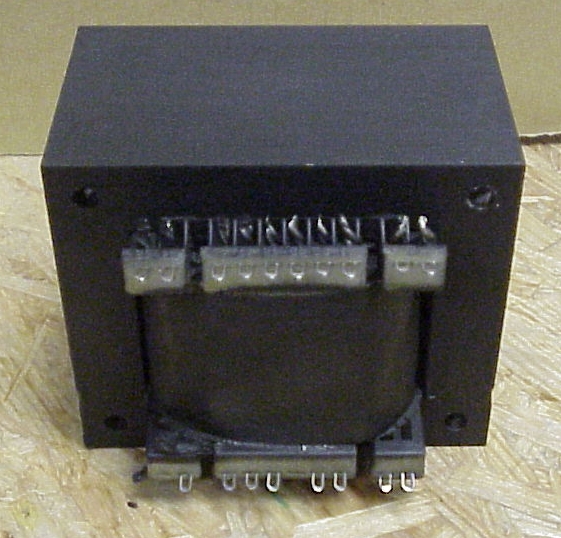 use with tube circuits. Primary : 100/127/230 V, can be used worldwide !!! , Secondaries: 2*270 V 0,2 A 2* 50 V 0,2 A 6,3 V 2 A 5 V 3,5 A 6,3 V 7 A B+ secondaries can also be connected in parallel for use with a rectifier bridge. The 50 V secondaries can be used for biasing or in series wit hthe 270 V secondaries to get a 320 V plate supply. Made in Germany. Measures:96mm*84mm* 100mm. |
